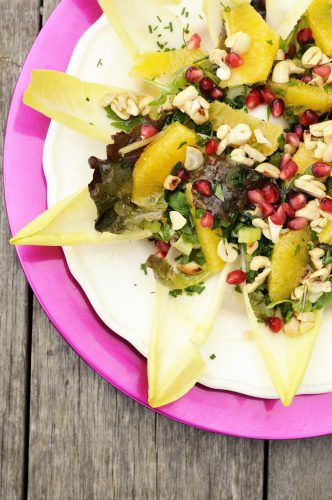 This is a super salad to serve to guests over the festive period in more ways than one. It’s super simple to put together, looks great on the table and you can just keep doubling up the ingredients to accommodate the number of guests you are catering for. Equally lovely as a light and easy individual starter, Season’s Greetings salad makes an attractive side dish or bumper salad for the buffet table.
